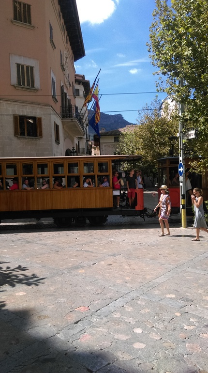 Дальше заехали в Соллер. После Вальдемоссы конечно все скромнее. Но посмотрели красивый собор. Ещё по году ходит такой старинный трамвайчик, на котором можно покататься. Также для желающих, из Пальмы в Соллер едет старинный поезд.