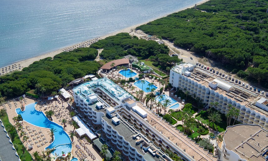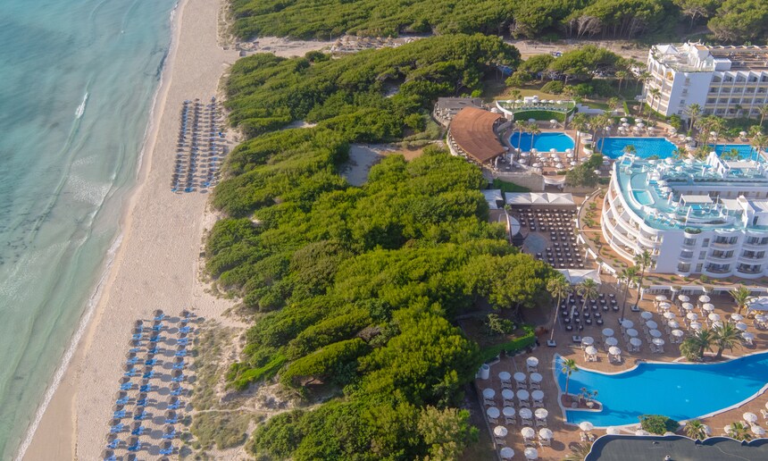Отель раскинулся на одном из самых красивых пляжей острова Плайя-де-Муро, и в плотную прилегает к сосновому бору!