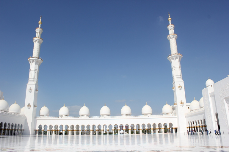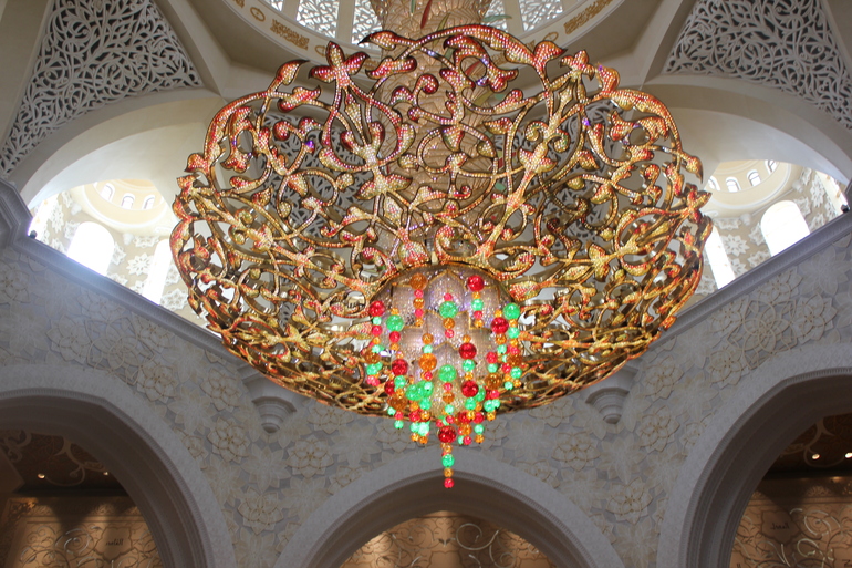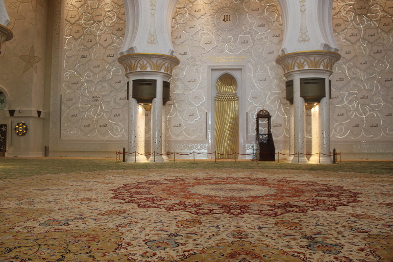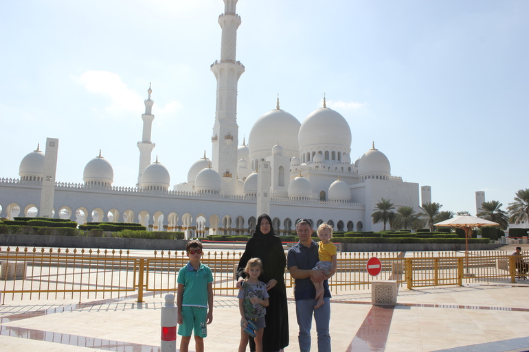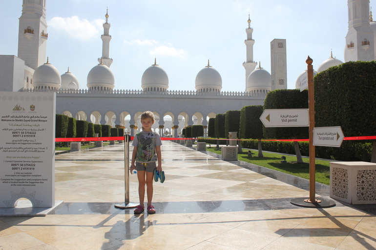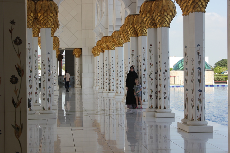 Еще мы ездили на экскурсию , и это единственное не очень приятное воспоминание , но и то не все ,у нас был индивидуальный трансфер , первым пунктом была белая мечеть Зайеда, для того чтоб туда попасть гид нам сказал что надо одеться правильно и если нет то даст наряд или по желанию можно купить за 15$, ну одела я платье длинное на всякий случай, когда приехал водитель (он говорил только на ломанном английском и кое как понимал его старший сын так как мы с мужем учили немецкий и то когда это было)и когда узнал ,что больше ни чего у меня нет сказал что меня не пустят и надо купить , ну ладно думаем заедим и купим , завозит он нас в магазин и нам обЪявляют цену заоблачную, в итоге скидывают и мы как чумовые покупаем за 650 дирхам что в переводе на наши примерно 10т
