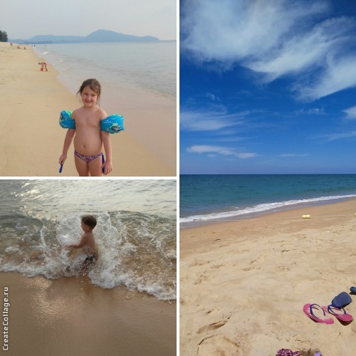 Море... Море потрясающее. Очень близко! Красивое неимоверно. Теплое. Волшебное. Волн не было вообще. Но... есть одно НО! Море в Таиланде "кусючее". Как мы поняли, пока есть волны хотя бы небольшие, "кусается" меньше. Дети почувствовали это уже под конец, был штиль и "кусалось" море сильно! С криками "аааа" они вылетели из воды и загнать их обратно мы не смогли.
