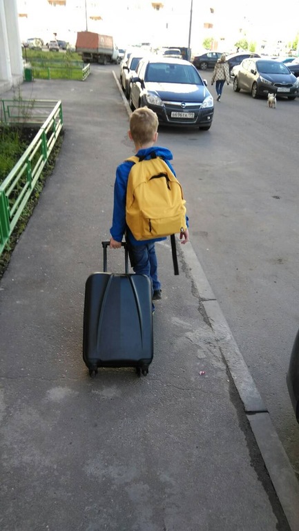 Собрали чемодан, не ложился спать в субботу, чтоб посмотреть куда, что положу. Рюкзак с играми сам собирал.