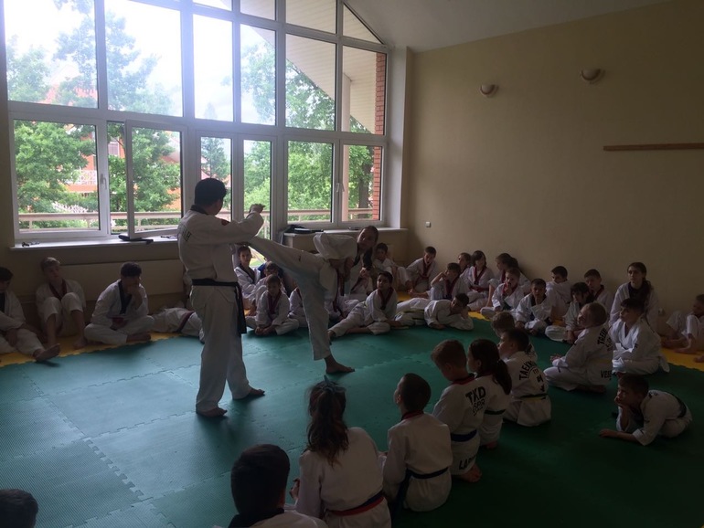 Часов в 9 у них начался семинар, приезжал представитель из Корее с 8 даном. Как мне рассказал муж (в детстве тоже занимался тхеквандо), это когда у тебя есть чёрный пояс начинают давать даны, все их 10 и 8 это круто.