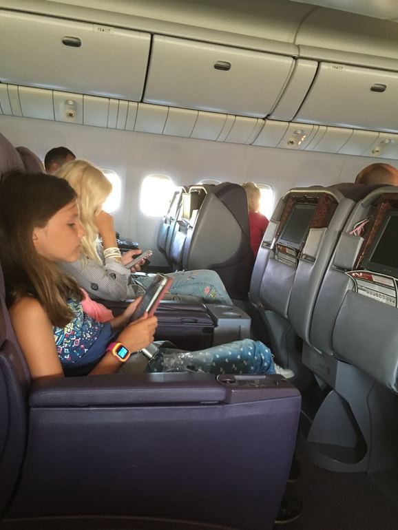 Аэропорт Ираклиона это тот еще квест! Вылет в 7:30, привезли в 5 утра, а в 7 мы еще стояли в очереди на стойке регистрации! Стояли два часа, а то и больше. Это было что-то...бедные дети..разбудили их в 4 утра, так еще стой столько в душном помещении. Что такое кондиционеры там не знают, НО ...ищем плюсы...зато совершенно случайно мы опять летели бизнесом))) Вио у меня везунчик. Хотя, думали, что нас точно посадят у туалетов (онлайн регистрации естесенно тоже нет...ну, если кондеев нет, откуда в жопе алмазы) взяться такой роскоши).