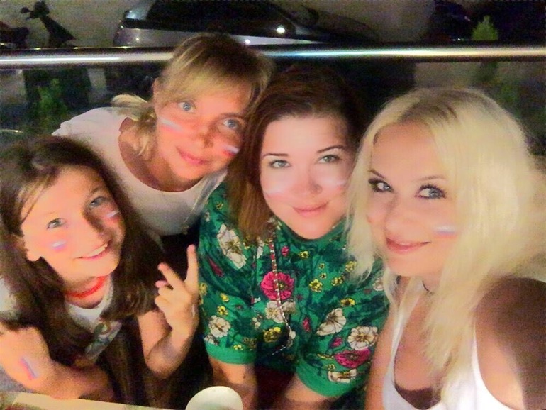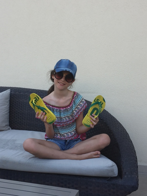 Да, конечно же мы там были в теме почти всех игр ЧМ по футболу. Это же просто событие века. Учитывая, что у меня еще и друг бразилец нарисовался случайно и у меня даже теперь есть крутые бразильские "хаваньяс", которые Вио подтянула (размер у нас уже почти не отличается)