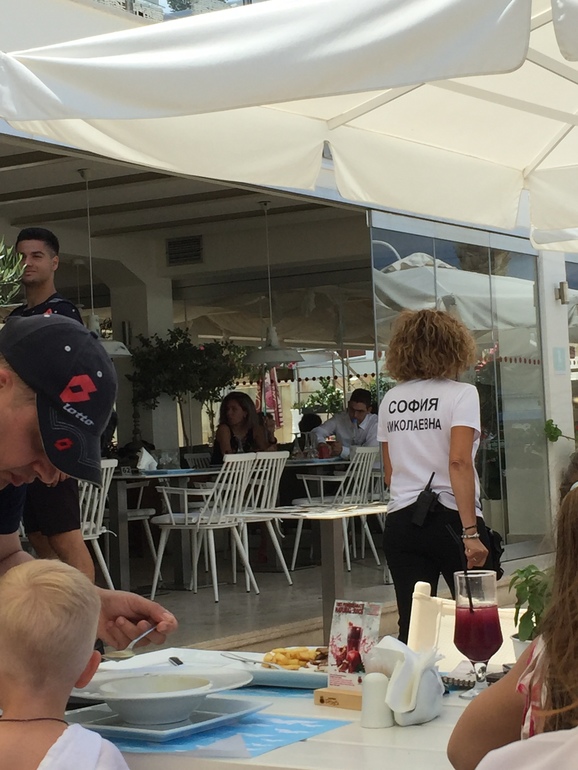 Ну и еще фото с наших гулянок. Ходили гуляли вдоль набережной. Очень симпатично..кафешки-музыка-море (то, чего мне так не хватало в Болгарии, где сто улиц и все с магазинами!). Тут тоже была и улица с магазинами и ее мы тоже стороной не обходили, конечно. Но, по крайней мере всегда был выбор куда идти. Другое дело, что за две недели этот маршрут и знакомые лица официантов в кафешках уже подбешивает. К слову сказать люди все очень приветливые, ни с каким хамством мы не сталкивались. Продавцы-официанты-уборщицы - все устраивало. На побережье очень много красивых кафешек. Просто ходишь и получаешь эстетическое удовольствие. Я только ради этого готова была кушать за компанию)))