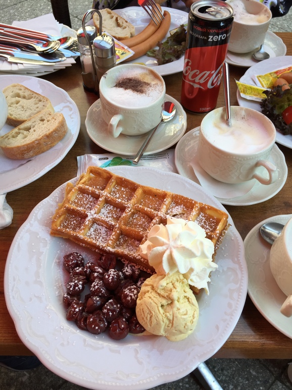Ладно, есть тут и что-то хорошее...я ж должна была это найти))) Это наивкуснейшие вафли с мороженым и ягодами. Прям сижу облизываюсь)) Больше там ничего нет! По крайней мере в центре. Желания возвращаться в этот город тоже нет. Даже проездом, потому что аэропорт Франкфурта это тот еще квест. Мне казалось, что больше аэропорта, чем в Стамбуле быть не может. Оказывается может! Указатели есть, но показывают не туда! В поисках туалета мы спускались и поднимались на разные этажи, куда-то заворачивали и т.д. Про то, как сдать багаж и найти камеру хранения - можно писать отдельные посты. Даже имевшаяся у нас карта аэропорта нам не помогла.