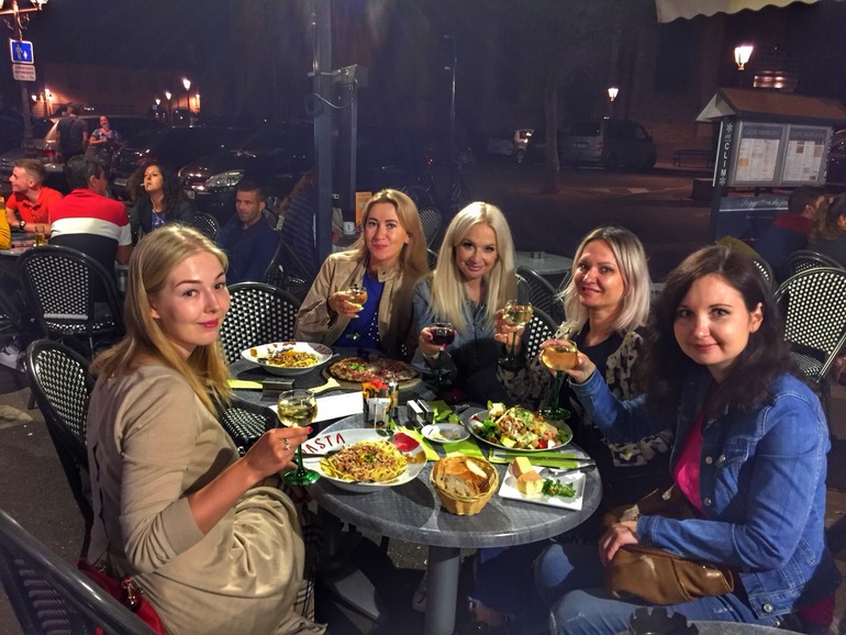 Тут еще в неполном составе, во Франкфурте к нам присоединилась девочка из Питера.
