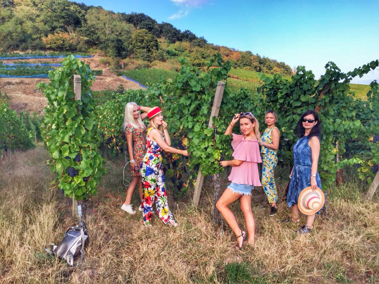 По пути из одной деревушки в другую мы останавливались пофоткаться в виноградниках и заодно и покушать свежесорванного винограда)))