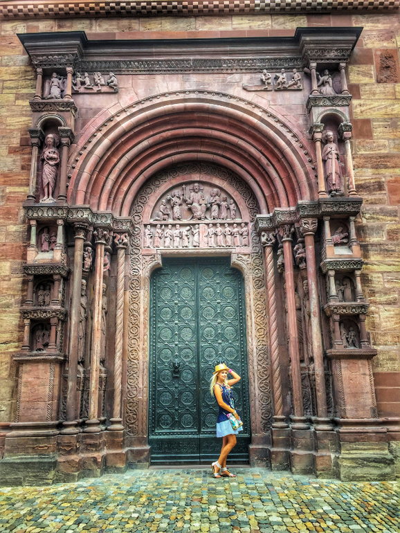 Дошли до собора Нотр Дам, тоже обязателен к посещению! На протяжении двух веков страсбургский Нотр-Дам был самым высоким в мире собором Олеся полезла вверх по узкой винтовой лестнице, 300 ступенек...герой!))) ! Мы ее ждали в ресторанчике)) Но, по мне так все готические соборы похожи друг на друга))