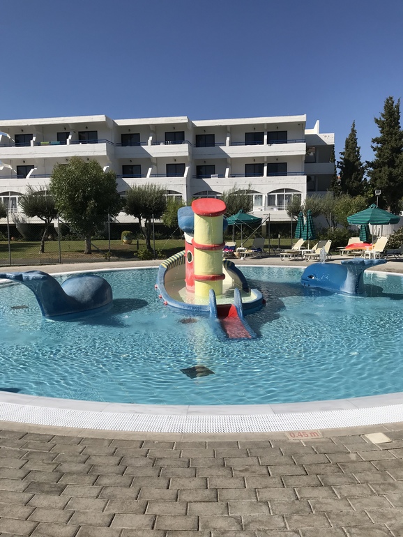 Итак, с 10.09 мы отдыхали на Родосе, отель Cyprotel Faliraki 4*. В Фалираках мы были в прошлом году и весь остров объехали на машине. Отзыв я также писала в прошлом году. Перелёт был Royal Flight ✈️, без задержек. В отель приехали в 10 утра, заселили нас в 14.00. Вместо стандарта нам достался двухкомнатный номер. Поэтому места было много. Отель нам понравился. Отличное соотношение цена-качество. Красивая территория и небольшой аквапарк на территории отеля. Никаких очередей на Горки нет, катайся сколько влезет. Ребёнок был счастлив.