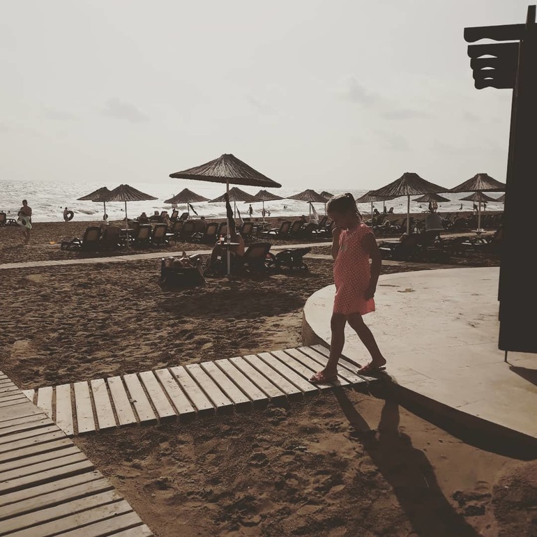 Сразу о погоде. Очень комфортные температуры 25-30 градусов. Но по утрам прохладно. Когда мы уезжали, погода начала портиться. И дождик прошел, и море заштормило. Думаю, лучше приезжать в начале октября. Но у нас не получилось. Так что мы очень радовались, что повезло с погодой.