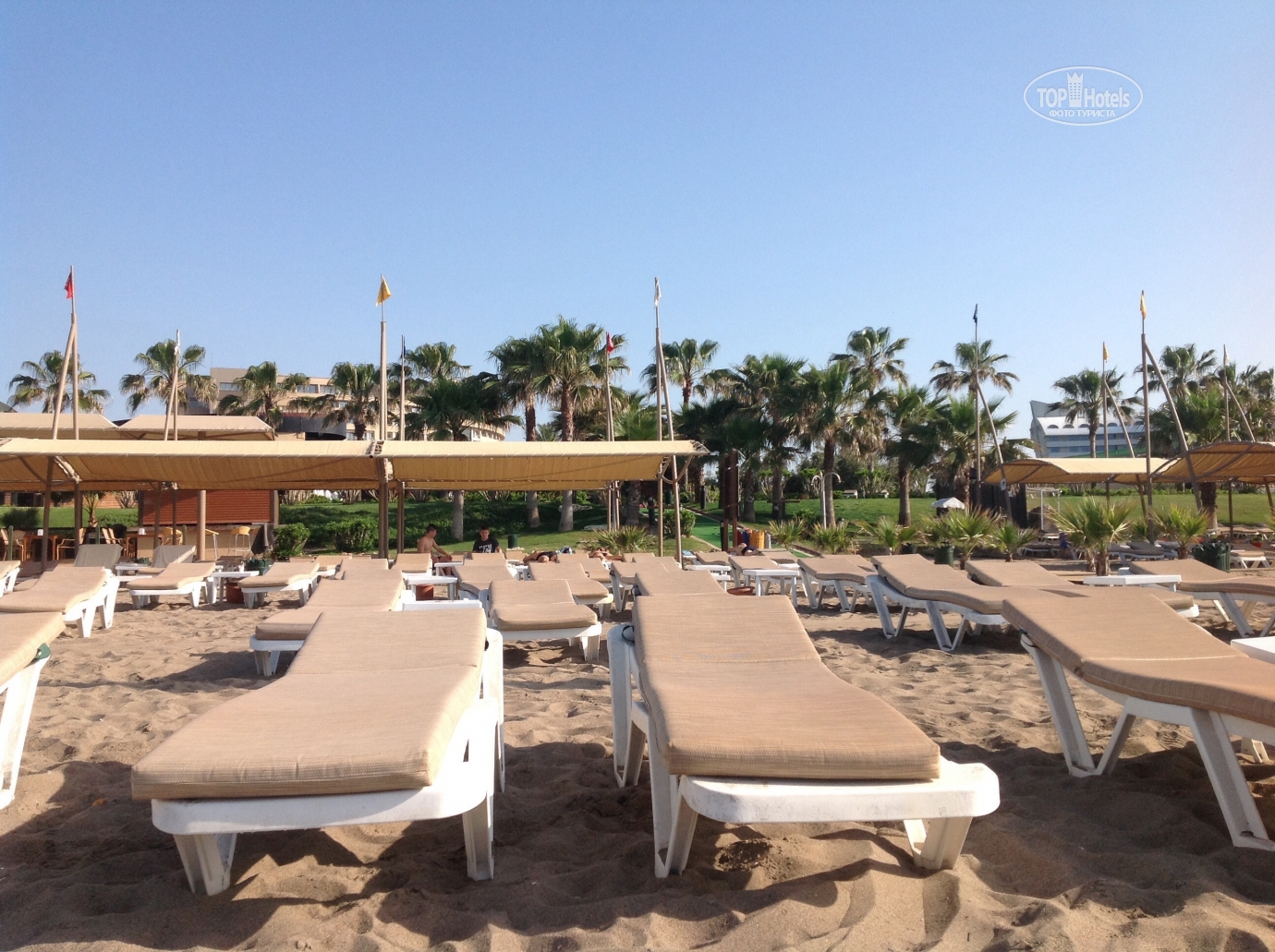 Собственный песчаный пляж находится рядом с отелем. Протяженность пляжа составляет 125 м. Шезлонги, зонтики, матрацы, пляжные полотенца - бесплатно. Заход в море - песок. Душ, кабины для переодевания, бар на пляже.