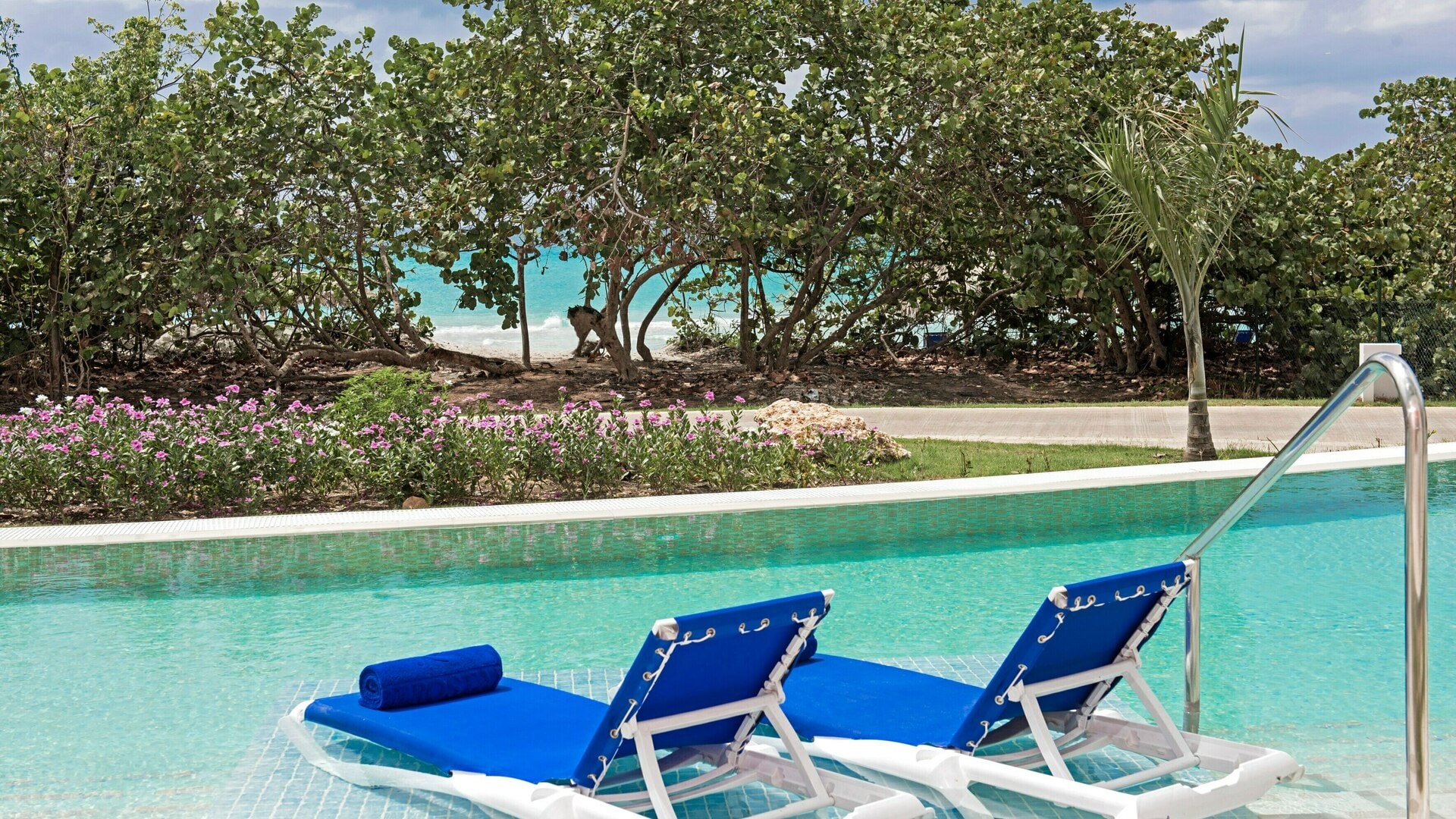 Отель расположен на первой береговой линии. Гамаки и зонтики у бассейна и пляже.