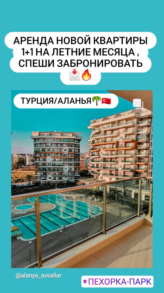 Девочки, сдаю квартиру в Турции(Alanya) 🇹🇷🌴☀️, 300м от пляжа. В числе удобств апартаментов кондиционеры, телевизор с плоским экраном ,полностью оборудованная техникой кухня. На территории комплекса работает открытый бассейн,горки и ресторан.Тренажерный зал,хаммам,сауна,настольный теннис, бильярд,футбольное поле,game zona , Теннисный корт. Беседка для гриля. В распоряжении гостей частный песчаный пляж с бесплатным wi fi. Цена зависит от кол-ва человек и времени пребывания ! Пишите в ЛС!)