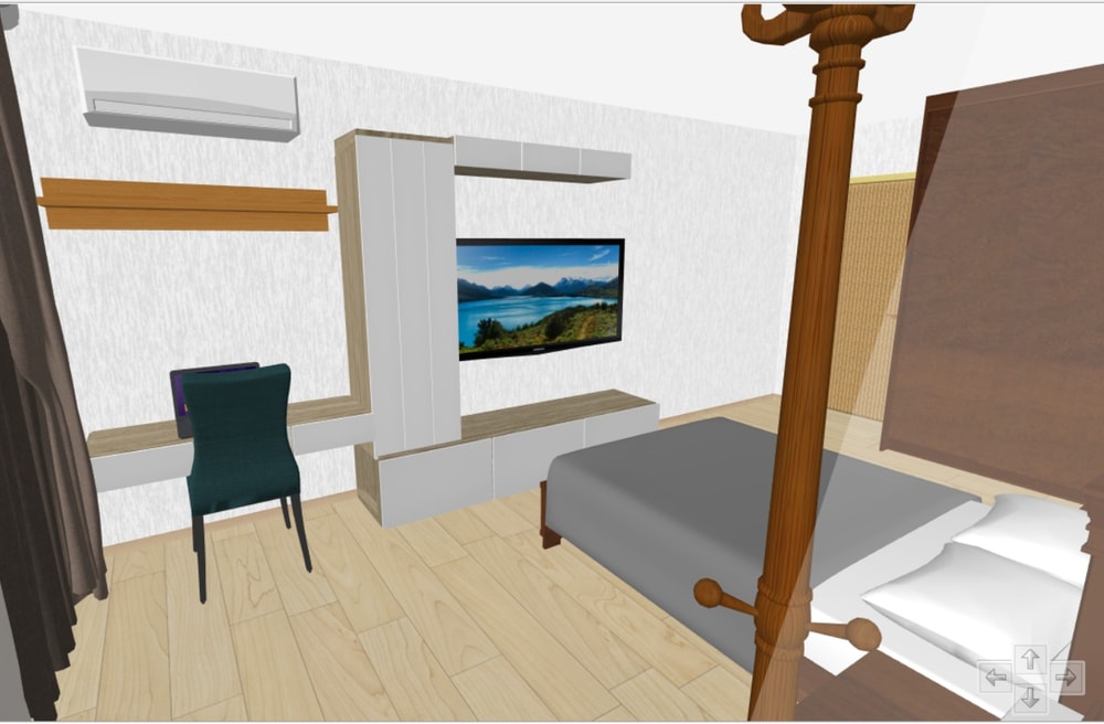 Добрый.комната 4,5*Х3,5.Окно слева в середине, справа сверху дверь. Нужно точно шкаф, стол компьютерный ,телевизор, кровать