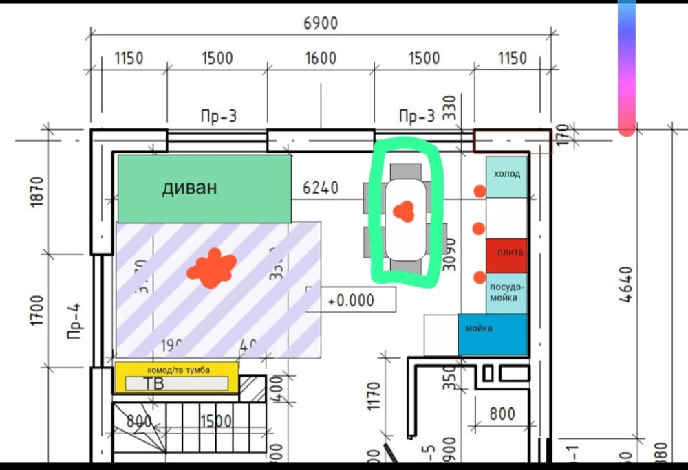Только вот думаю нужен ли светильник над столом? Или лучше в два ряда точечные делать?