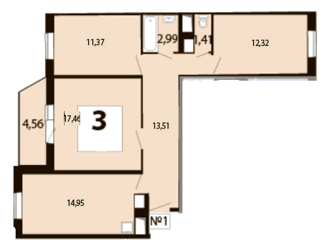 План у меня будет на днях, пока прилагаю картинку с сайта. на схеме это трешка, угловая, выделенная красным цветом (около "желтой" однокомнатной).