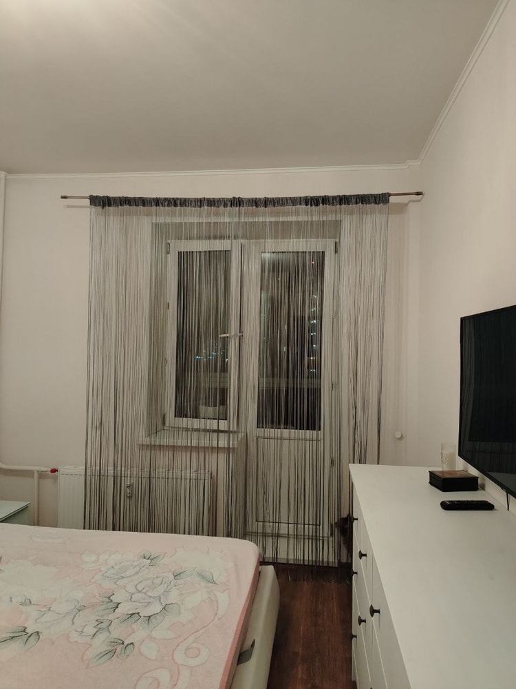 Я бы повесила римскую штору, но там балконная дверь, которая с апреля по октябрь всегда открыта.