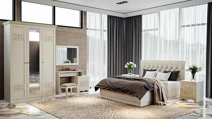 Как на фото. С такими ножками и двуцветную. Нужен комплект- двуспальная кровать без мягкой обивки с подъемным механизмом, шкаф, комод, прикроватные тумбы, столик. Чтобы предварительно можно было посмотреть. Все что смотрю- там нету как таковой коллекции. Только единичные элементы.