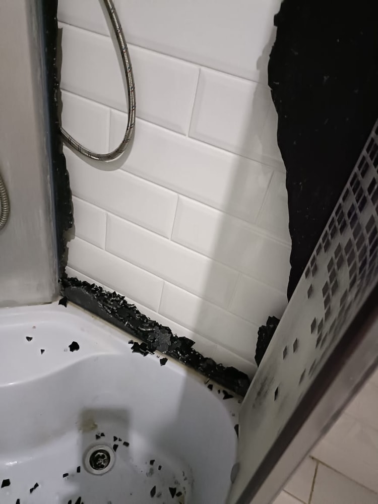 Собственно все проблемы можно увидеть на фото, это и форма и заплатка из белого кафеля.