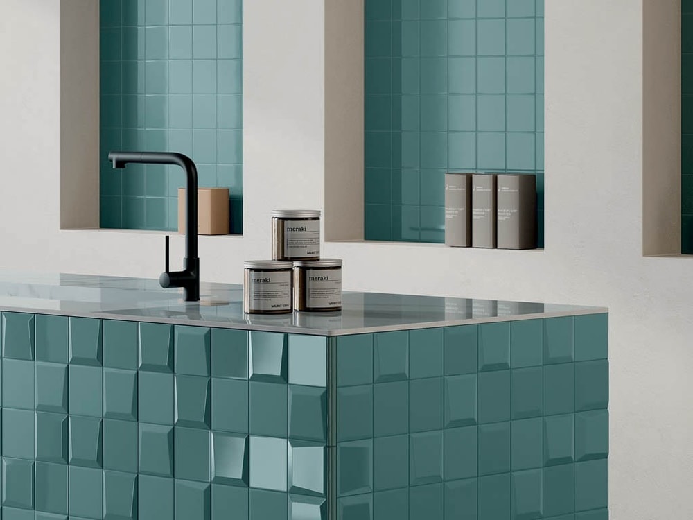 Есть идея, сделать одну стену с плиткой которая как бы выпирает гранями, но вопрос, насколько она практична, надо ли её протирать, из-за скопления пыли или налёта?