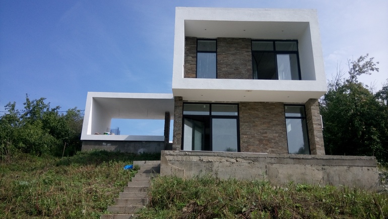 Для тех, кто не видел дом, рассказываю) Дом стоит на склоне, вход со второго этажа. Дом небольшой, 140 кв. В доме 2 спальни, гостиная, кухня, 2 санузла, гардеробная.