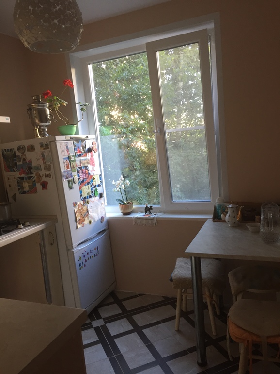 Девочки, я не знаю, какой серии у нас дом, возможно он и не серийный, строился для работников предприятия рядом с заводом. Двухэтажный, два подъезда по 4 кв на площадке. Комнаты не смежные, но маленькие. Даже не знаю, сколько метров у нас кухня. Но думаю 5-6. Может у кого-то есть похожая кухня (я про расположение), покажите, как вы уместили все? Холодильник очень мешает, но в коридор выносить не хочется конечно.