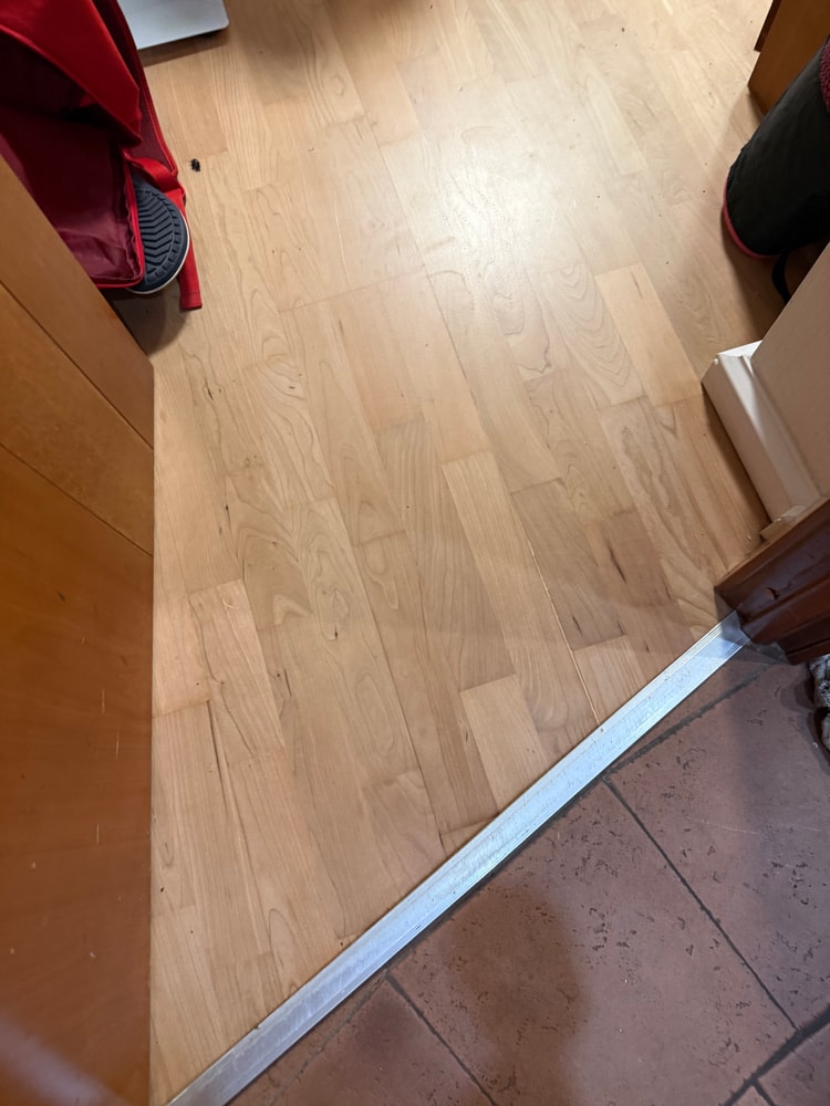 Если вкратце, делаю временный бюджетный ремонт на 2-3 года. Сейчас разровняли стены, положили ламинат, поклеили обои, снесли антресоль, кусок стены, установили дверь в кладовку. Наверху будет натяжной потолок. Двери менять не планирую (увы, они разные), возможно, решусь