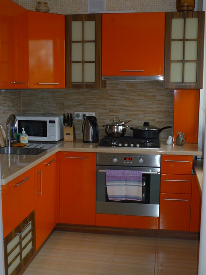 Да, и правда места у вас поменьше, мы газовую трубу перенесли, а еще у на колонка((( мы ее в угол повесили(на фото не видно), плита у нас:сверху газовая, духовка электрическая, а внизу посудомойка, тоже укладывались, как могли. с обратной стороны барной стойки 2 ящика и микроволновка. А кухня у вас очень симпатичная !