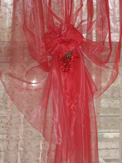У нас в детской комнате висит так, ближе к окну шторы плотные розово-лиловые, а поверх тонкая очень прозрачная органза в цветок и получается, что на шторах цветы. Очень красиво. А я замарачиваюсь новой тюлью на кухню))))