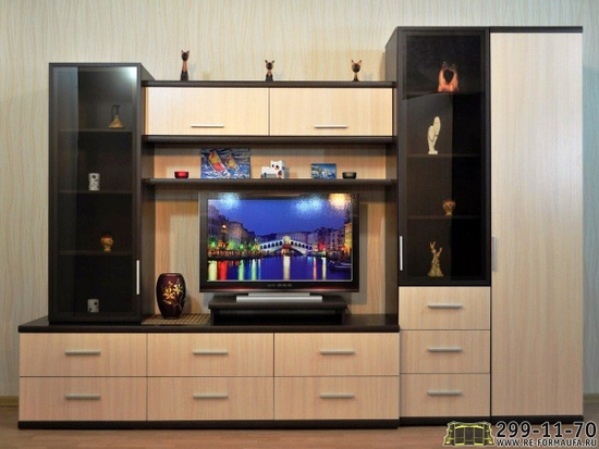 что то типа того, но без бокового шкафа, вот нижние секции такие примерно, с боку вообще можно ничего не делать либо не очень грузные полочки или шкафчики, а наверху тоже шкафчики, ну чтоб сама стенка не казалась грузной. а была симетричной слева и права, ну и телек будет висеть ... как думаешь?мы планируем цвета кофейные, бежевые, молочные... ну а пол темное дерево, как подлокотники... ну это надо в кучу все собрать, мне надо с программой подружиться))) чтоб все изобразить)))
