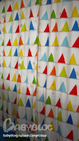 Потом в икее я нашла вот эти цветастые шторки и там же очень "солнечную люстру"))) Тюль была куплена в Леруа Мерлен.