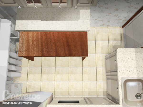 Очень нравится Ваш проект! У нас такая же по размеру вот: http://www.babyblog.ru/user/rjcsypzyf/17561 меня смущяет растояние между холодильником и плитой не близко ли? А вот верхняя полка для корзинок очень клёво - беру на заметку! а то, что они будут грязными, так через пару месяцев их можно будет почистить, пошкурить и покрасить другим цветом(краской из балончиков, например) и всё - в интерьере новый акцент!