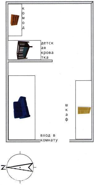 Интерьерное решение гостинойМы живем с мужем и ребенком вместе с свекром и свекровью. Нам выделена комната размером 5,50 метра на 3,20 метра. Сейчас комната у нас обустроена так