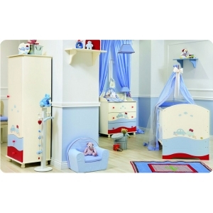 У нас дом большой поэтому детям мы выделили целый этаж где они будут с нянями жить, у каждого она своя, поэтому комнаты для нянь мы обустроили непосредственно рядом с детскими, сейчас вот осталось мне доделать комнату сынули, сразу скажу что в приметы и суеверия я не верю, покупаю все что нравится и когда хочу. Она у нас в голубо-синем цвете, потоллок с подключаемой подсветкой аля звездное небо, На стенах еще художественная роспись в стиле детской комнаты, так вот.. я еще не выбрала мебель для сына..