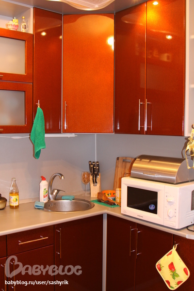 у нас похожая кухня - только сушка в угловом шкафу над мойуой - там много места будет, просто хранить посуду в таком шкафу неочень удобно, а для сушки в самый раз. зато справа у тебя будет два больших полноценных шкафа.