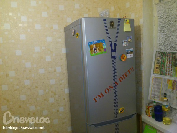 Рядом с холодильником сделали стол. Делал мой папа сам. для экономии места сделали откидной. На фотках его нет. 25 см от стены как полочка, дальше откидное крыло (складывается вниз) когда нужен стол мы его поднимаем. При этом все равно можно пройти на кухню. В общем сто получился 60х60 см. в разложенном виде.