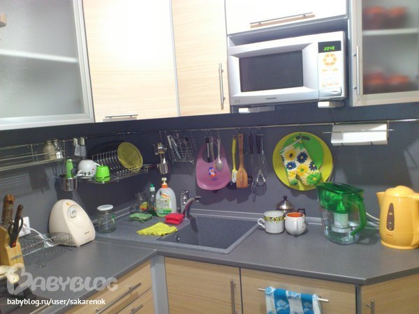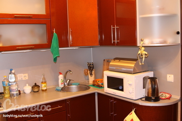 ты имеешь ввиду, где микроволновка стоит? она стоит по правой стене - там у меня помещается хлебопечка, потом микроволновка, а потом еще чайник.