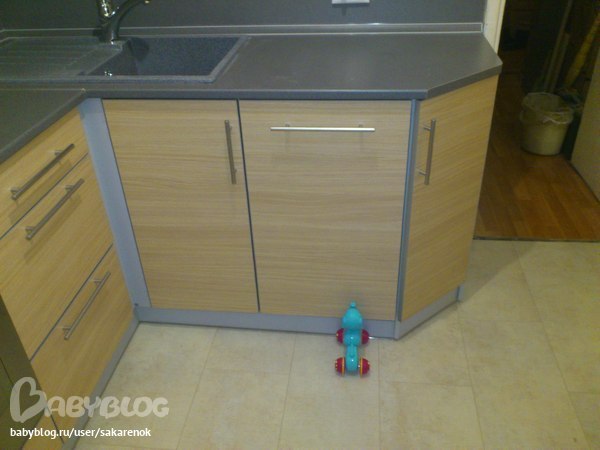 на первой фотографии начиная слева сначала идут три выдвыжных ящика, затем узкий двухярусный бар. в последствии, эти ящики, вместе с баром были оттуда вытащены и отставлены на противоположную сторону кухни к холодильнику, а на их место встала посудомоечная машина) жаль, что мы сразу ее не купили)