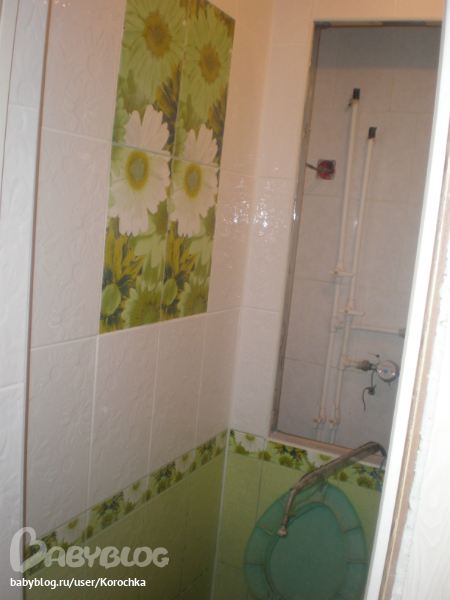 мы совместили ванну туалет и сделали зелененькую)))вернее еще кладут, все переживала, понравится ли после, у вас посмлтрела и успокоилась