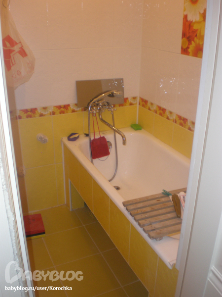 Интересно у вас ванна заложена плиткой, до этого подобных вариантов я не встречала. Туда наверное и поставить что-то можно и около ванны удобно стоять?