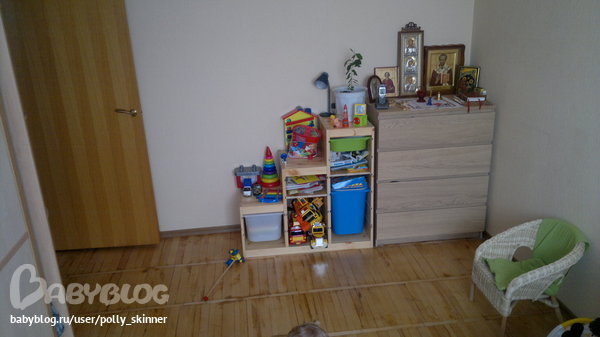 там.где стоит кресло типа будет стоять письменный стол.но я сомневаюсь...временами кажется. что было лучше.Секция с игрушками как то совсем задвинута в угол, ваня даже перестал к ней подходить - это как то неудобно, что ли, ему...на фото слева шкаф встроенный во всю стену а за кадром кровать.