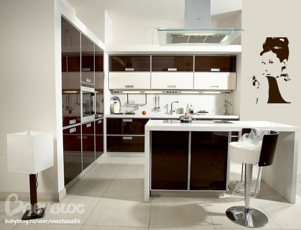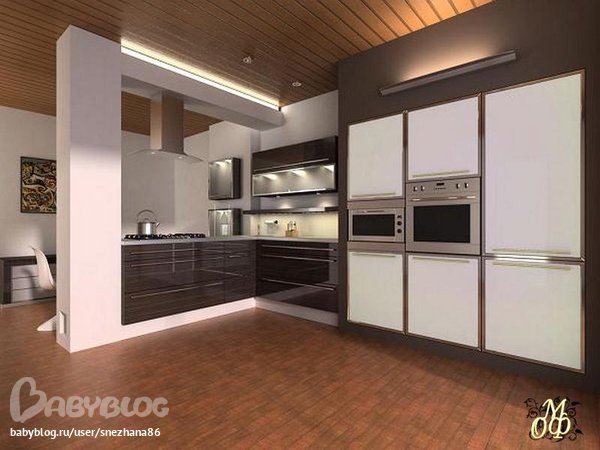 А есть фотка вытяжки?? Красивая наверно. Так может Вам тогда низ коричневый сделать, а верх бежевый?? И холодильник с духовкой и мв бежевые подобрать, м?? ;-)