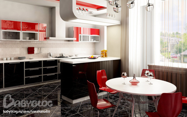 Пока складывается так: слева от двери вдоль стены холодильник + высокий шкаф с встроенными духовкой и микроволновкой, далее рабочая поверхность (что над ней не пойму никак), угловая раковина, напротив двери посередине варочная панель, слева и справа от нее рабочие поверхности со шкафами внизу, над ними навесные шкафы с наполовину стеклянными дверцами. Что над раковиной не знаю