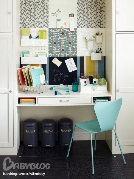Какая приятная подборка! Мы подобный "офис" сделали в икеевском комоде-секретере, но пока не придумала как все лучше расположить - теперь вот вдохновение посетило)))