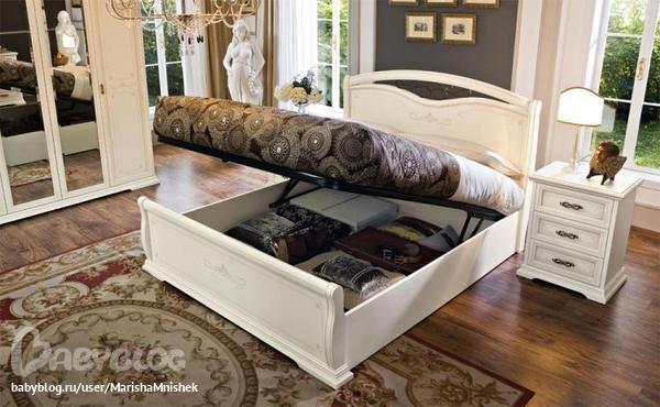 у нас тоже кровать с таким ящиком.прошлая квартира была однушка без встроенных шкафов,так в нашей кровати целая жизнь умещалась))))единственный минус-не вымыть пол под ней...
