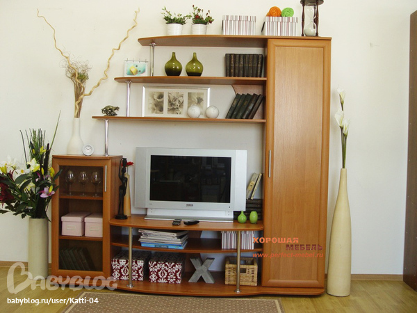 Ох, рекомендую ходить на выставки итальянской мебели, увидите, какие тенденции сейчас в моде. То, что вы предлагаете, это не модно, не современно, да просто ужасно, извините, конечно. Я не предлагаю покупать итальянцев, а предлагаю увидеть для себя варианты растановки мебели, в частности, так называемые стенки под тв. Вот первый попавшийся сайт, посмотрите варианты, такое же вы сможете осуществить с любым производителем мебели.