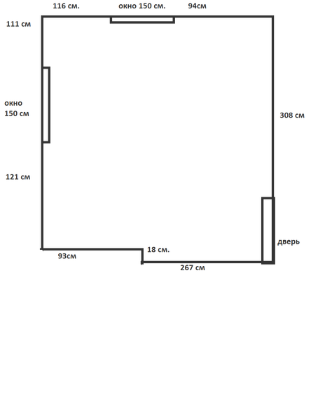 Интерьерное решение спальниВсю голову сломала. Имеем вот такую комнату под спальню в новостройке (квадратную 16 кв.м) угловую с 2 окнами.