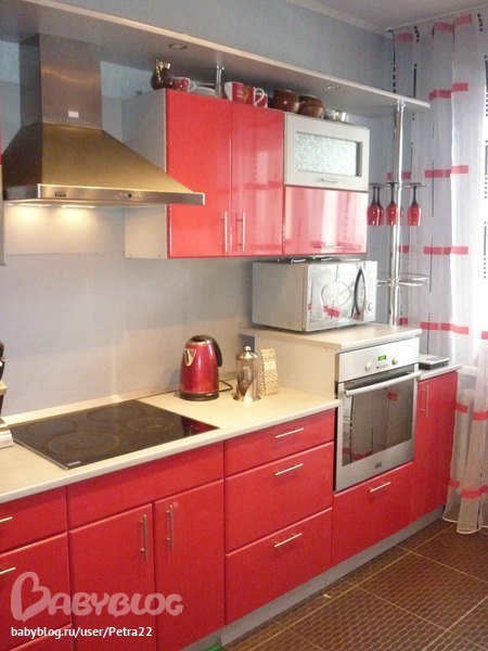 Вот хочу шкафы широкие глухие цвета либо серо-стального, либо венге, пол светлый(маркий, блиииин...), кухня будет просторная 15,3... ну, а красные купить чисто декор-дополнения...