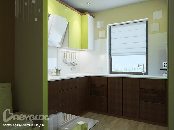 темная техника и салатовый фартук -СУПЕР,другие варианты мне не понравились(муж тоже глянул-первый больше понравился...))))